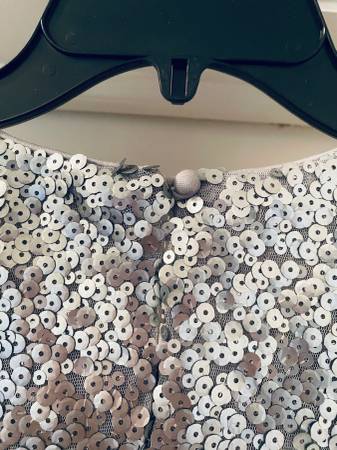 Calvin Klein Silver Sequin top. Size XS. Top is lined. Slips on with a button closure. NEW! With tags ALL SALES FINAL WE DO NOT RESPOND TO EMAILS