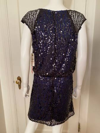NEW! Laundry Black Sequin Dress with Navy lining Item also available on eBay POSHMARK and Mercari under Neiman Capital for purchase and shipping. We do not respond to emails