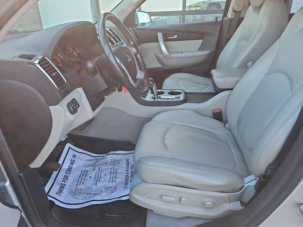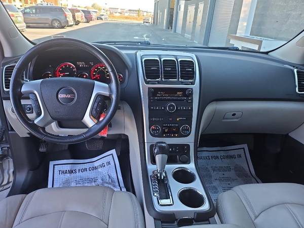 Bluetooth technology is built into this unit, keeping your hands on the steering wheel and your focus on the road. Never get into a cold vehicle again with the remote start feature on this unit. Engulf yourself with the crystal clear sound of a BOSE sound system in this GMC Acadia. The rear parking assist technology on this model will put you at ease when reversing. The system alerts you as you get closer to an obstruction. The leather seats in this 2012 GMC Acadia are a must for buyers looking for comfort, durability, and style. This vehicle keeps you comfortable with Auto Climate. See what's behind you with the back up camera on this unit. Enjoy the convenience of the power liftgate on this 2012 GMC Acadia . Maintaining a stable interior temperature in this GMC Acadia is easy with the climate control system. This 2012 GMC Acadia shines with an exquisite metallic silver exterior finish.
