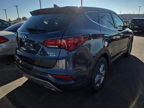 The Hyundai Santa Fe Sport features a hands-free Bluetooth phone system. The Hyundai Santa Fe Sport has a clean CARFAX vehicle history report. Protect this 2017 Hyundai Santa Fe Sport from unwanted accidents with a cutting edge backup camera system. Maintaining a stable interior temperature in the vehicle is easy with the climate control system. This unit has a 4 Cyl, 2.4L high output engine. Quickly unlock this Hyundai Santa Fe Sport with keyless entry. Conquer any rainy, snowy, or icy road conditions this winter with the all wheel drive system on this 2017 Hyundai Santa Fe Sport . This 2017 Hyundai Santa Fe Sport projects refinement with a racy metallic gray exterior. Easily set your speed in this Hyundai Santa Fe Sport with a state of the art cruise control system. Increase or decrease velocity with the touch of a button. The Electronic Stability Control will keep you on your intended path.