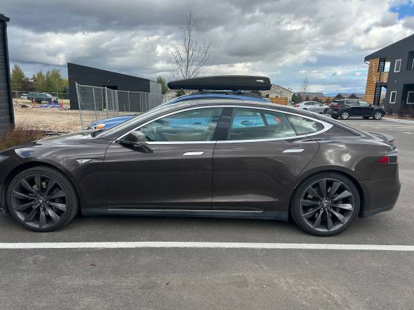 2013 Brown Tesla Model S for sale. 83,000 miles. The car is in very good condition. Car is the P85 version with leather interiors, moonroof, premium interior and battery.