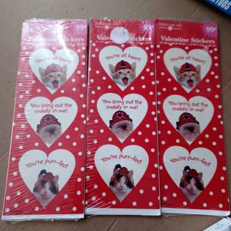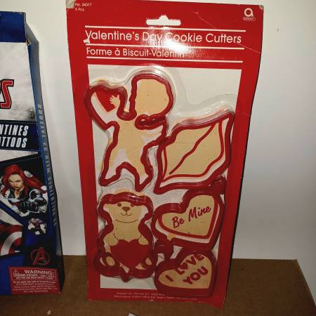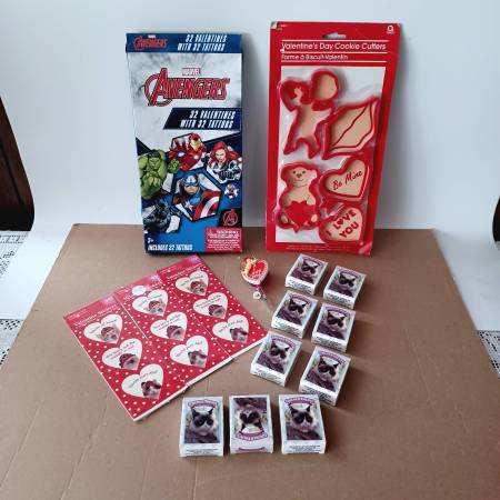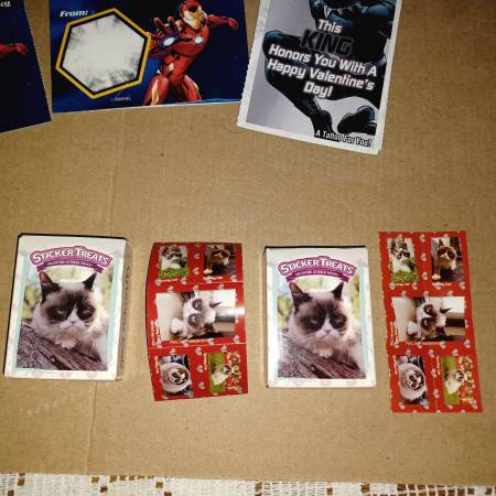 Anvenges Valentine's Day Cards, Cookie Cutters and Grumpy Cat Stickers. One price for everything. Thanks for looking. Pick up in Firth. Cash only. No holds.