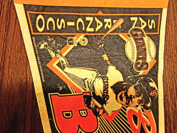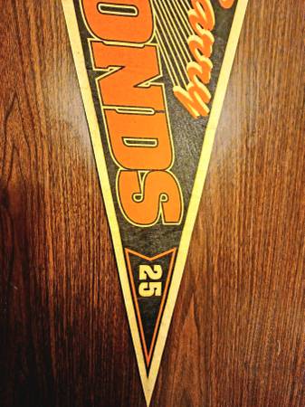 Barry Bonds San Francisco Giants Pennant. Wincraft #117 Salem Sportwear. Made In U.S.A. Still Has The Hang Tag. In Good Condition. Needs A Good Cleaning. Thanks for looking. Pick up in Firth. Cash...