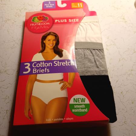 NEW! Fruit of the loom 3 Plus Size Undergarments. 3 Cotton Stretch Breifs. Size 11. New smooth waistband. Thanks for looking. Pick up in Firth. Cash only. No holds.