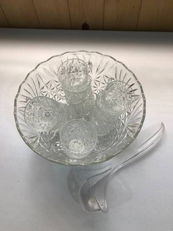 Vintage Punch Bowl Set, includes bowl, ladle and 8 cups.