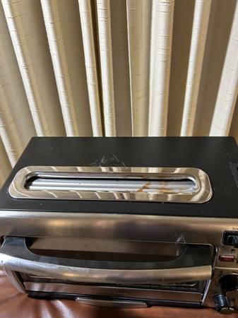 Hamilton Beach Toastation- 2 in 1 Oven & Toaster. This has not been used a lot as my parents ate out most of the time. It is clean and WORKS. There is a spot on top where some food burnt that I can’t seem to remove but it doesn’t affect the operation of this item. See 2nd to last pic. Also have original owners manual. These sell for $99.99 plus tax on Amazon. Please ask any questions.