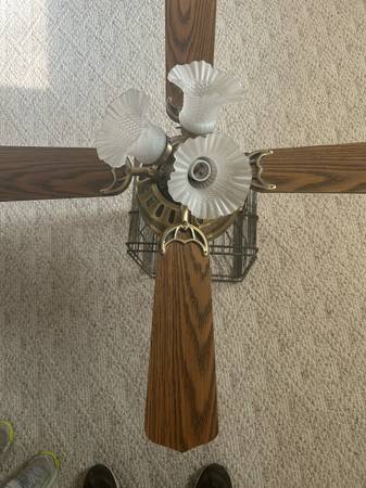 2 - ceiling fans with 3 light kits. Both work well. One put together the other in the box. $40 for both