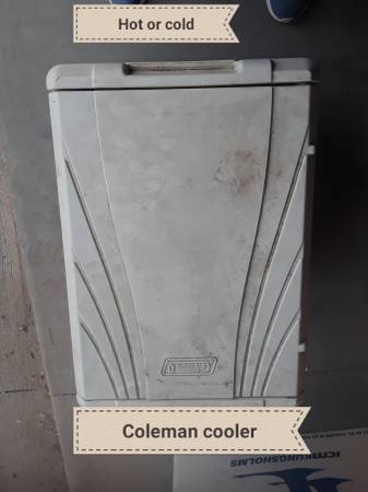 Waferboard, cooler, end table, nite stand, chair, trunk, Pallet rack system, scooter, boys bike