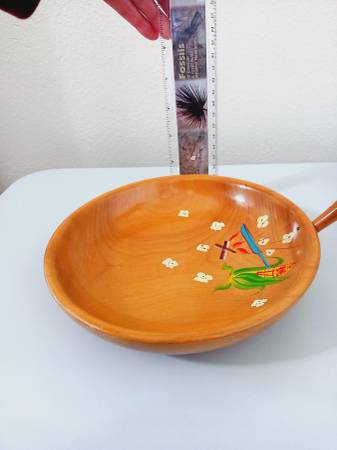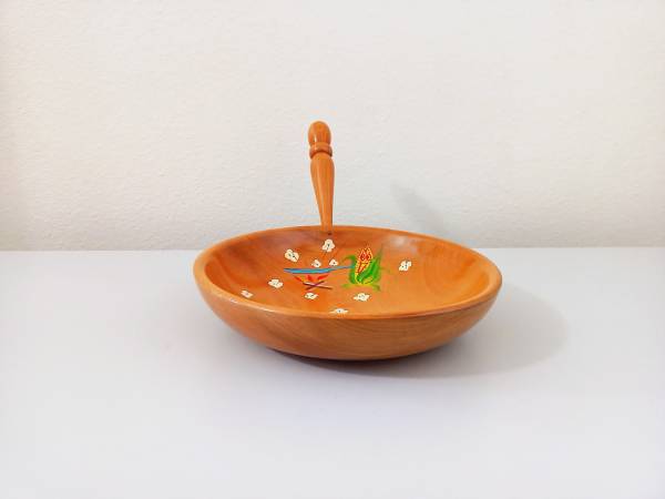 Wood popcorn serving bowl made in Japan Excellent condition! Bought used, we never personally used it, just enjoyed it as an art piece.