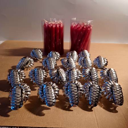 20 Vintage Metal Tin Clip On Christmas Tree 🎄 Candle Holders. Pinecone Pattern and Silver In Color. Lots Of Extra Candles. See Pictures. Perfect For That Old Fashion Christmas Tree 🎄. Thanks for...