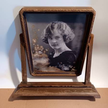 Beautiful Vintage Standing Picture Frames. Measures approx 7 1/2 x 10. Picture is damaged. But the frame is very nice. Just what you need for a family photo. Thanks you looking. Pick up in Firth....