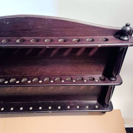 Beautiful Walnut Spoon Holder . Holds 25 Spoons. Measures approx. 17 1/4 x 12 1/2. Would make a nice Spoon Holder for your Spoons. Thanks for looking. Pick up in Firth. Cash only. No holds.