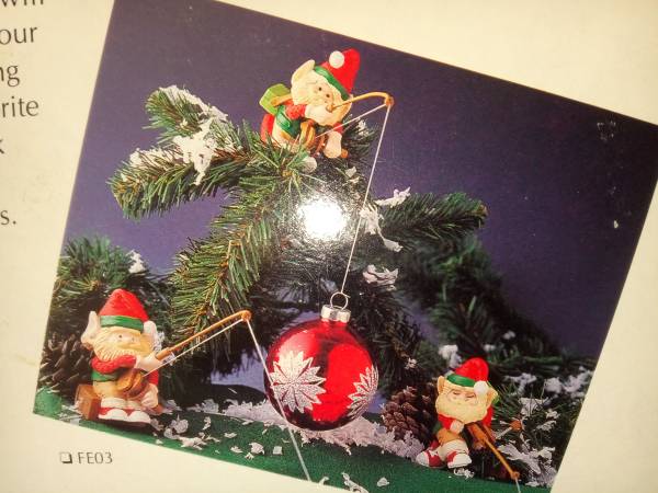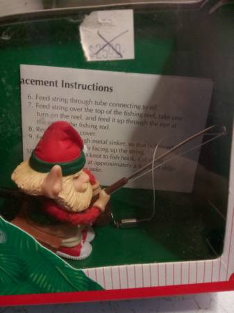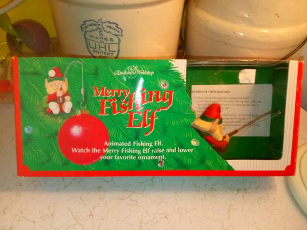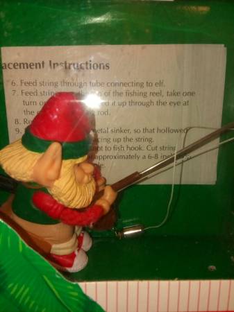 This is a Merry Fishing Elf. It is animated and raises and lowers your favorite Christmas ornament. Your kids will love watching this cute little elf. Comes in it's original box. Thanks for looking....