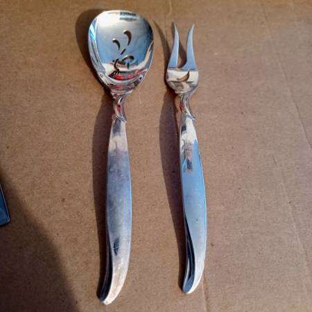 Stainless Serving Pieces. Tramontina Covered Jelly Or Condiment Set, Knife Rest, Napkin Holder, Footed Cup, 6 Misc. Serving Spoons and Forks, Roger's "Flair" Pickle Fork And Spoon, 4 Piece Hostess Set. Would Make Great Gifts. Thanks for looking. Pick up in Firth. Cash only. No holds.