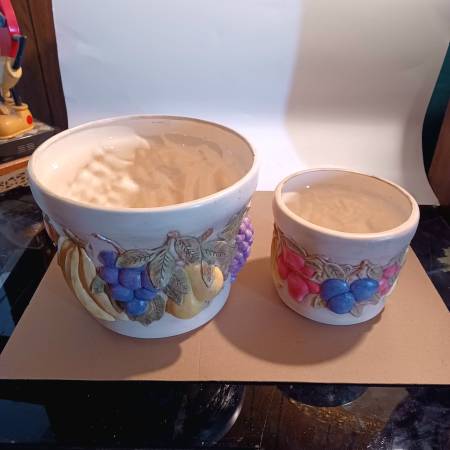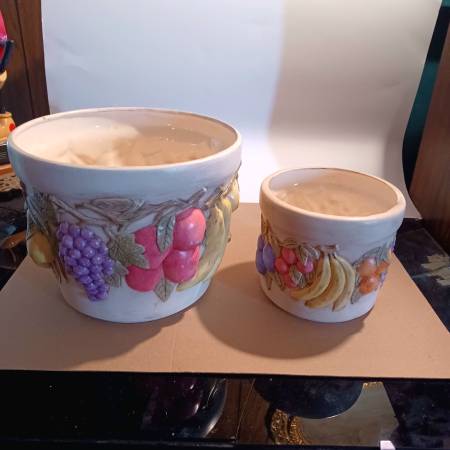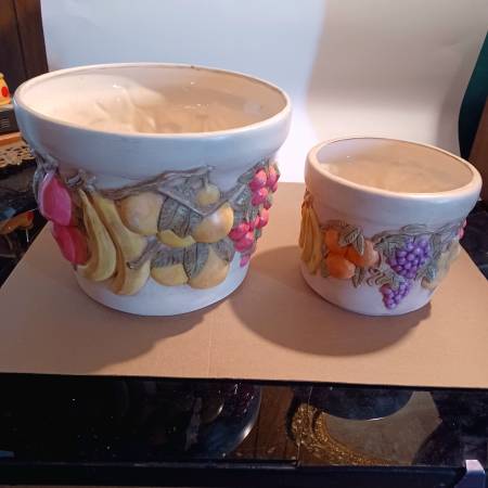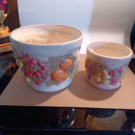 Vintage 2 Beautiful Arnel's Fruit Planters. 1975. Fruit goes all the way around the planter. Don't miss out on these Vintage Planters. See pictures for details. Thanks for looking. Pick up in Firth....