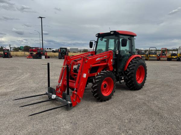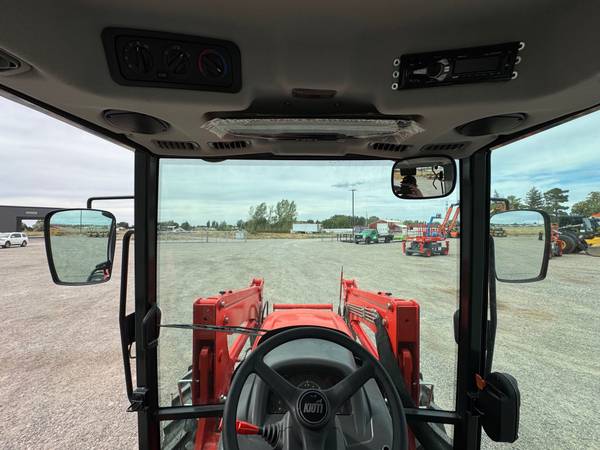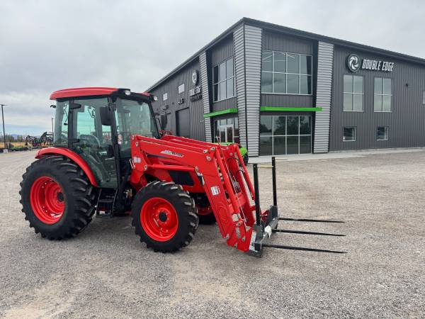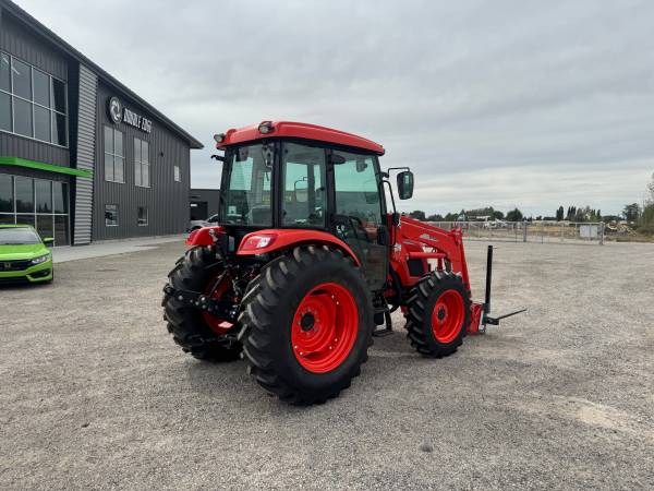 Cab Heat AC, Radio, 12X12 Synchro Shuttle Trans, 4WD, Class II 3 Point Hitch, 73 HP with 63 HP to the PTO, Includes KL7320 Loader with Quick Attach has 82" Bucket and Cutting Edge, 3384 LB Lift Capacity at Pivot Pin.