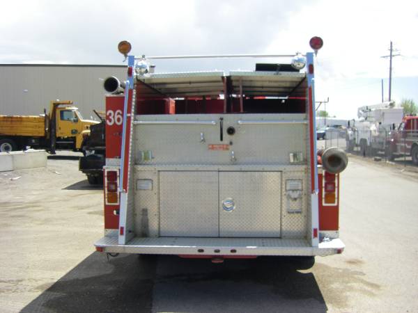 This is an exceptionally clean brush fire truck that has been county owned and maintained since new. The truck shows minimal usage with only 25,000 ACTUAL miles. It's equipped with an 8.2 liter Detroit Fuel Pincher diesel, an MT 643 Allison 4 speed automatic transmission and a 2 speed rear end. Approximately 600 gallon water capacity and has 100 feet of one inch hard hose on the real. The pump shows 475 hours of usage. It comes with a 110 volt inverter and the tires are 90% or better. Truck is located in Twin Falls, Idaho. Call 2zero8-2one9-494zero.