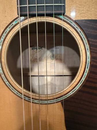 FOR SALE: TAYLOR Grand Orchestra 618e. This is an absolutely BEAUTIFUL guitar. The pictures tell it all. Beautiful figured maple back and sides with a solid spruce top. It has the exclusive Taylor ES2 sound system, beautiful binding and inlays. Sale includes a stunning "tooled" case that sets this apart from other acoustics. Sale also includes D'Addario humidifier to keep in the case when stored. The only reason I am selling this is because I inherited a 50 year old Martin D28 from my brother so it wont get played as much. Plus, I have another Taylor that is my main acoustic player. Price is $2650, OBO