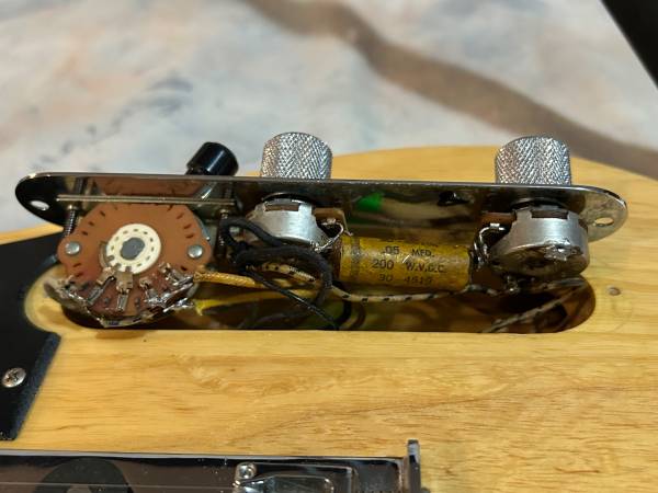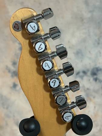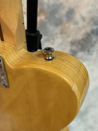 Butterscotch blonde Tele. Previous owner upgraded with Sperzel locking Fender tuners. He also upgraded the electronics with full size ports, oil on paper tone cap and switchcraft output jack. Strap buttons upgraded to Dunlop strap locks. Comes with padded gig bag or can swap to black Tolex hard shell case for additional $50 if you prefer.