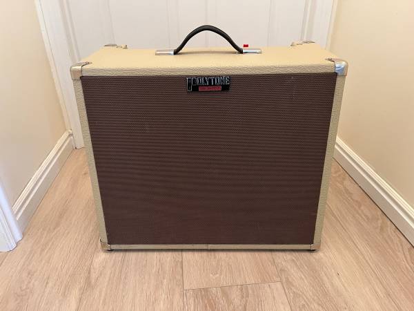 We have a used vintage Polytone amplifier. It appears to be the model 102 from the 1970’s. There is no builder plate or model identification numbers to verify that opinion. As shown in the pictures, the transformer is a Polytone part. We assume that the single 12” and two 8” speakers are original to this amp. The Tolex covering and grill cloth were recently applied and are in good condition. There is a Polytone “Mini Brute III” badge attached to the front grill, however, we do not believe this is that model. The circuit board and interior of the amplifier are both very clean and free of dirt, dust, or corrosion. The speakers are undamaged and do not buzz or rattle. The bottom of the amp cabinet is equipped with four sockets to install castors. A good fitting vinyl cabinet cover will be included. The cabinet measures 22” wide x 18” tall x 12” deep and weighs approximately 50 pounds.