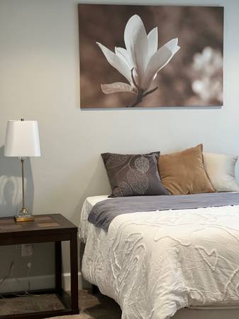 Very clean and comfortable fully furnished room in a smoke-free home. Each room includes either a king or full-size bed, along with all the furniture shown in the listing photos.