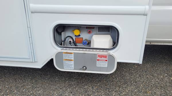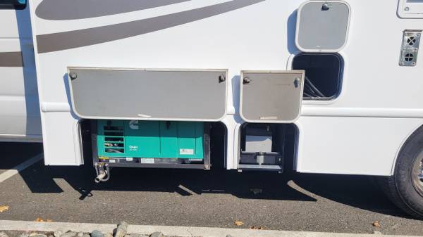 Free 3 month/3,000-mile powertrain warranty included, fresh gelcoat paint, generator tune-up, excellent tires, fluids changed, full-size spare tire, full roof reseal, commercial quality fabrics, water-resistant composite roofing, removable outdoor picnic table, HUGE "basement” storage, chemical-free winterization, central heating, solar battery charger ready, Class III hitch w/ Tow/Haul.