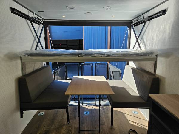 Room to Sleep 6 people with Pull Down Top Bunk and Bottom Sofas Convert to Bed!