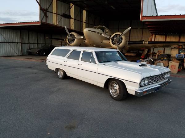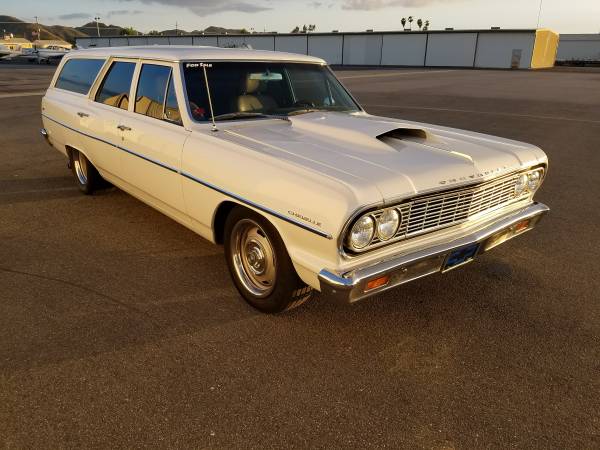 RARE 1964 Chevrolet Chevelle Wagon 300 - Super Charged Blown LT-1 358 Corvette Engine - Pearl White - California Native Classic - Rally Wheels - Power Bucket Leather Seats - Rear End Tubbed - Very Clean and Straight Classic!!!