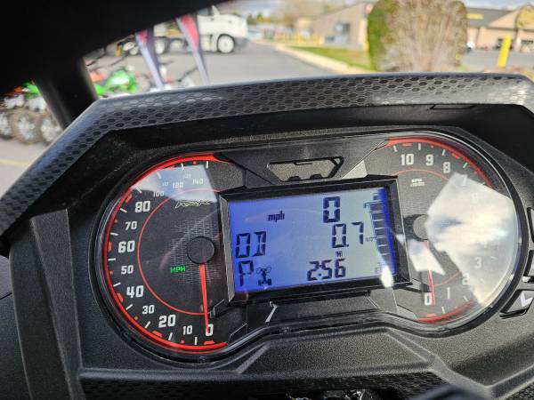 Driver - Dual-sweep analog dials with 4 in. LCD rider information center: user-selectable blue/red backlighting and brightness, programmable service intervals, speedometer, tachometer, odometer, tripmeter, clock, hour meter, gear indicator, fuel gauge, coolant temperature, voltmeter, service indicator and codes, seat belt reminder light, gear indicator, DC outlet + 12V power plug