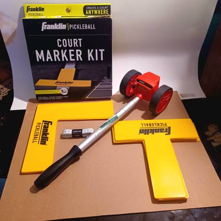 Pickleball Court Marker Kit. Includes reusable yellow line markers and tape measure. Comes with Lufkin 2 wheel measuring tool for long distance. Both for $20.00. Thanks for looking. Pick up in...